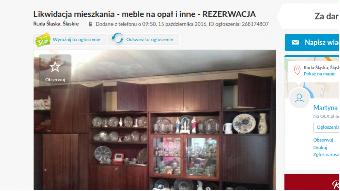 Do palenia w piecach atrakcyjne są także meble. Krakowski Alarm Smogowy w ubiegłorocznym sezonie grzewczym zauważył na popularnym portalu ogłoszeniowym OXL.pl rosnącą lawinowo liczbę ogłoszeń, w których oferowane są meble do spalenia. Oto przykład takiego ogłoszenia: